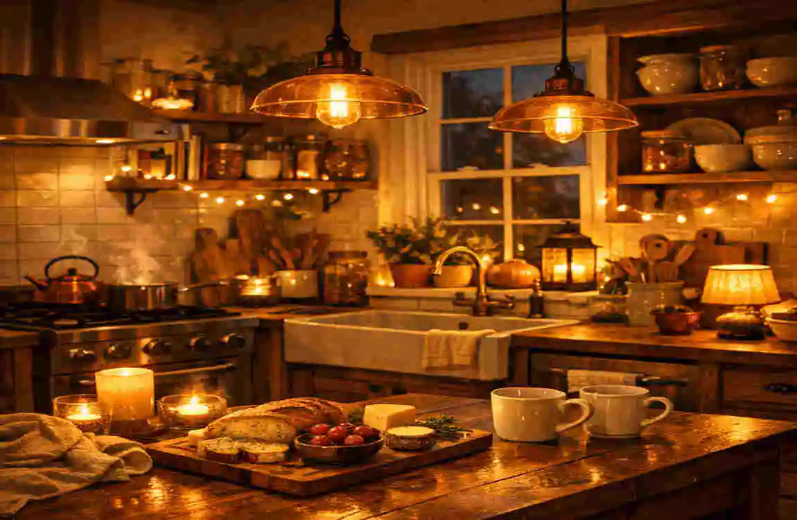 Warm LightingAdd pendant lights over islands, under-cabinet LEDs, and dimmer table lamps.Creates soft glow vs. harsh glare; layers ambiance for evenings.